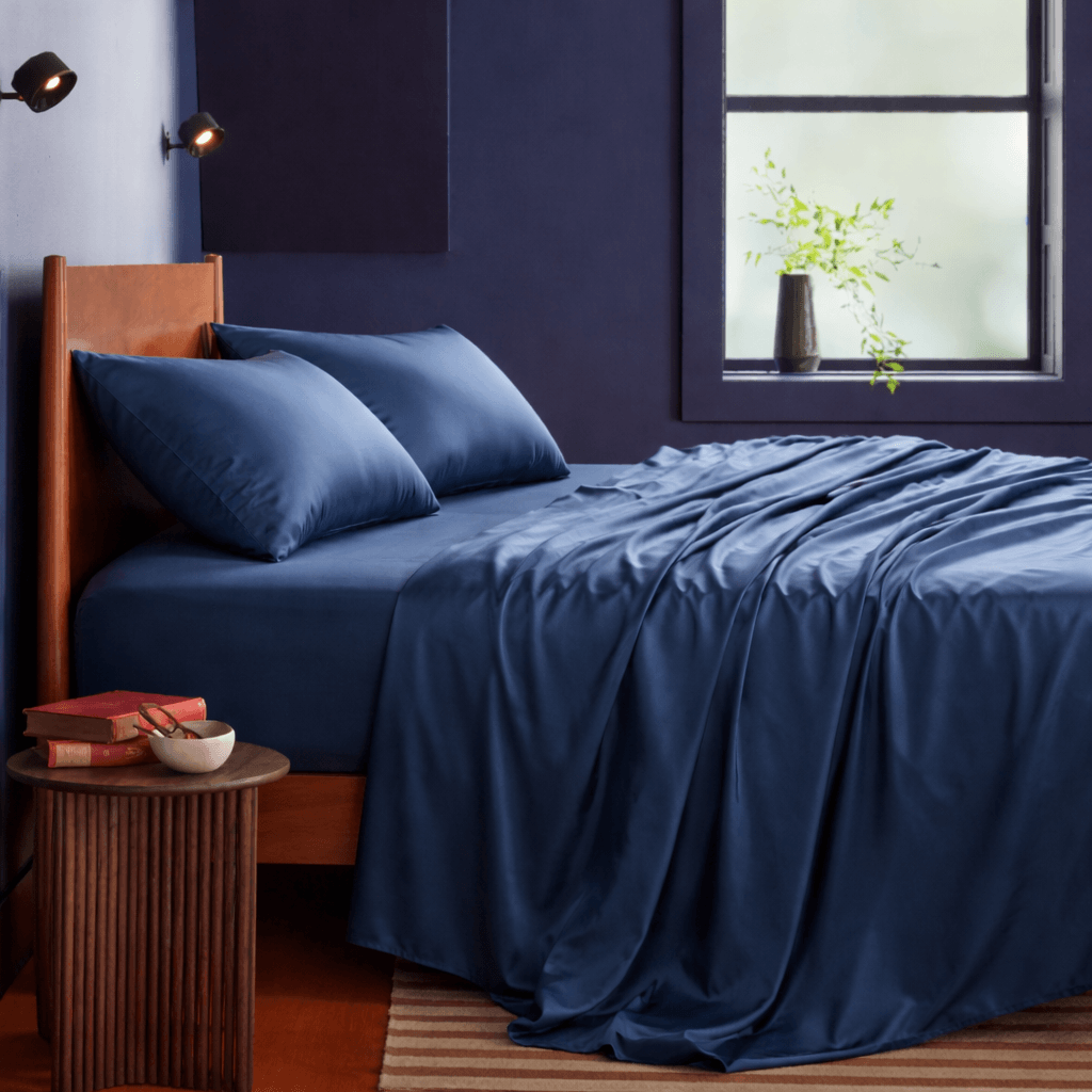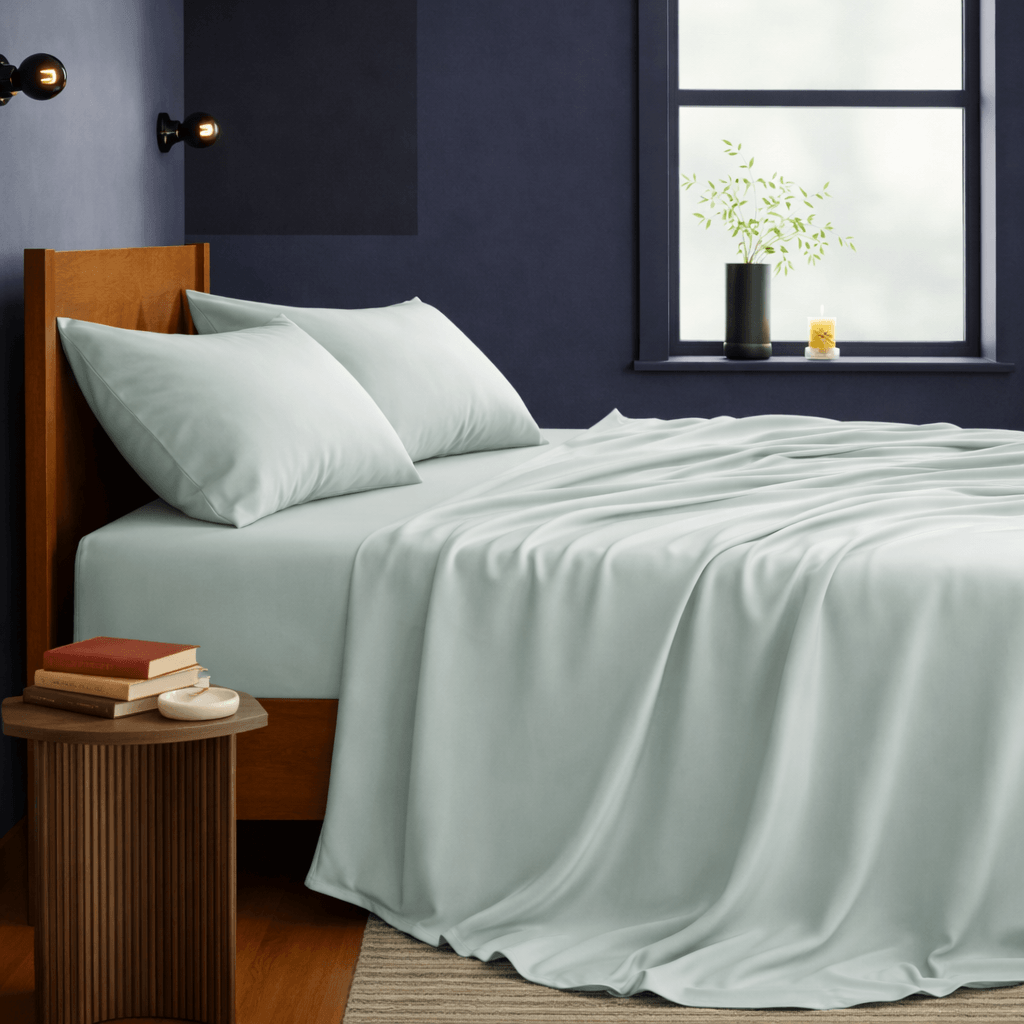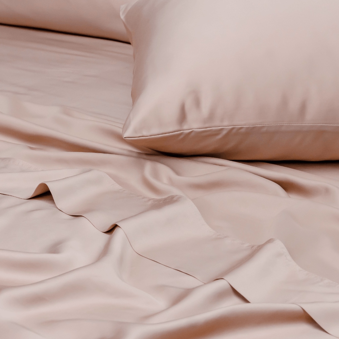 With a silky texture and subtle sheen, our sheets are sustainably manufactured and allow your body to breathe, naturally regulating your temperature for deeper, more restful sleep.