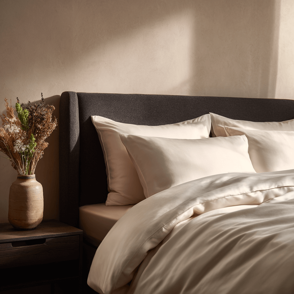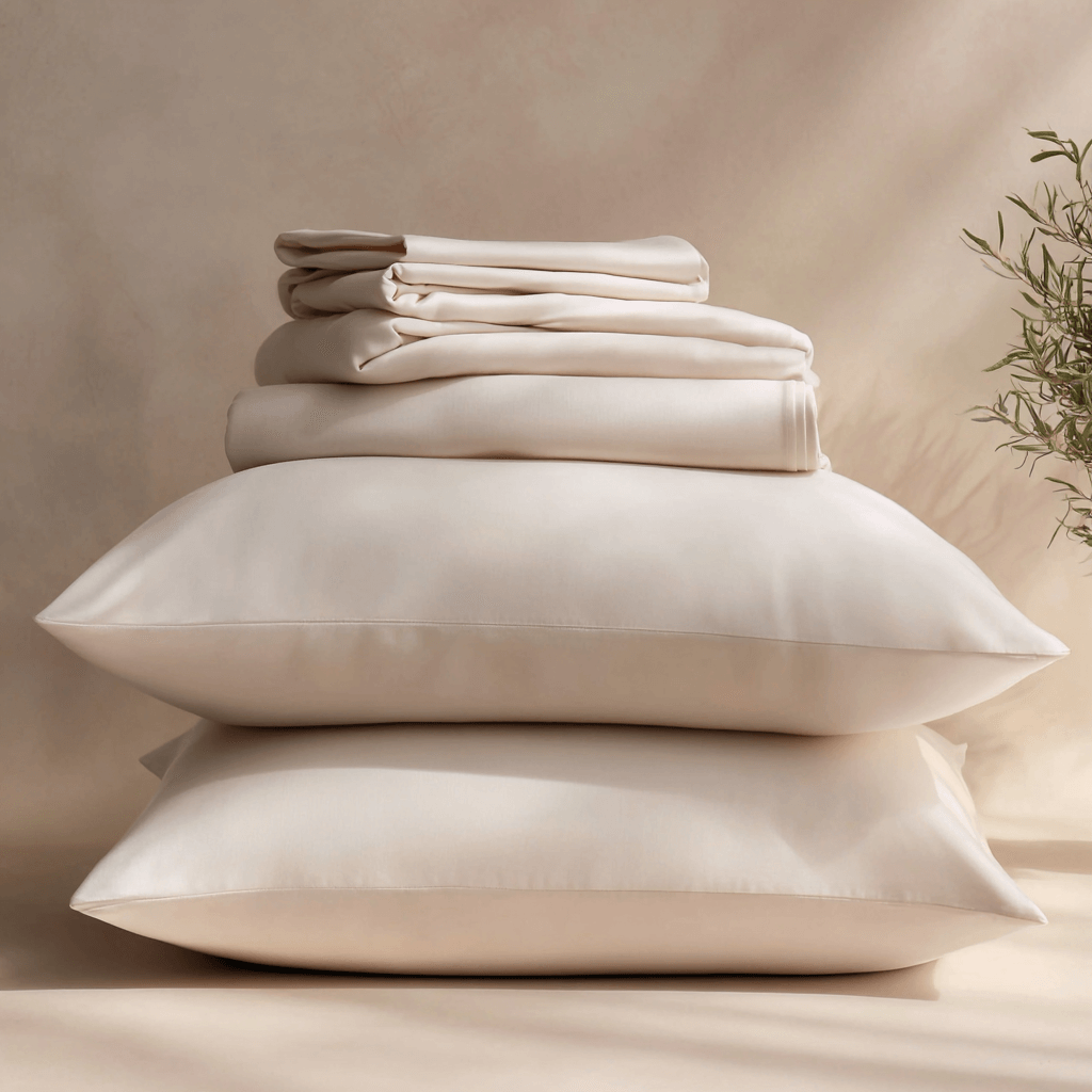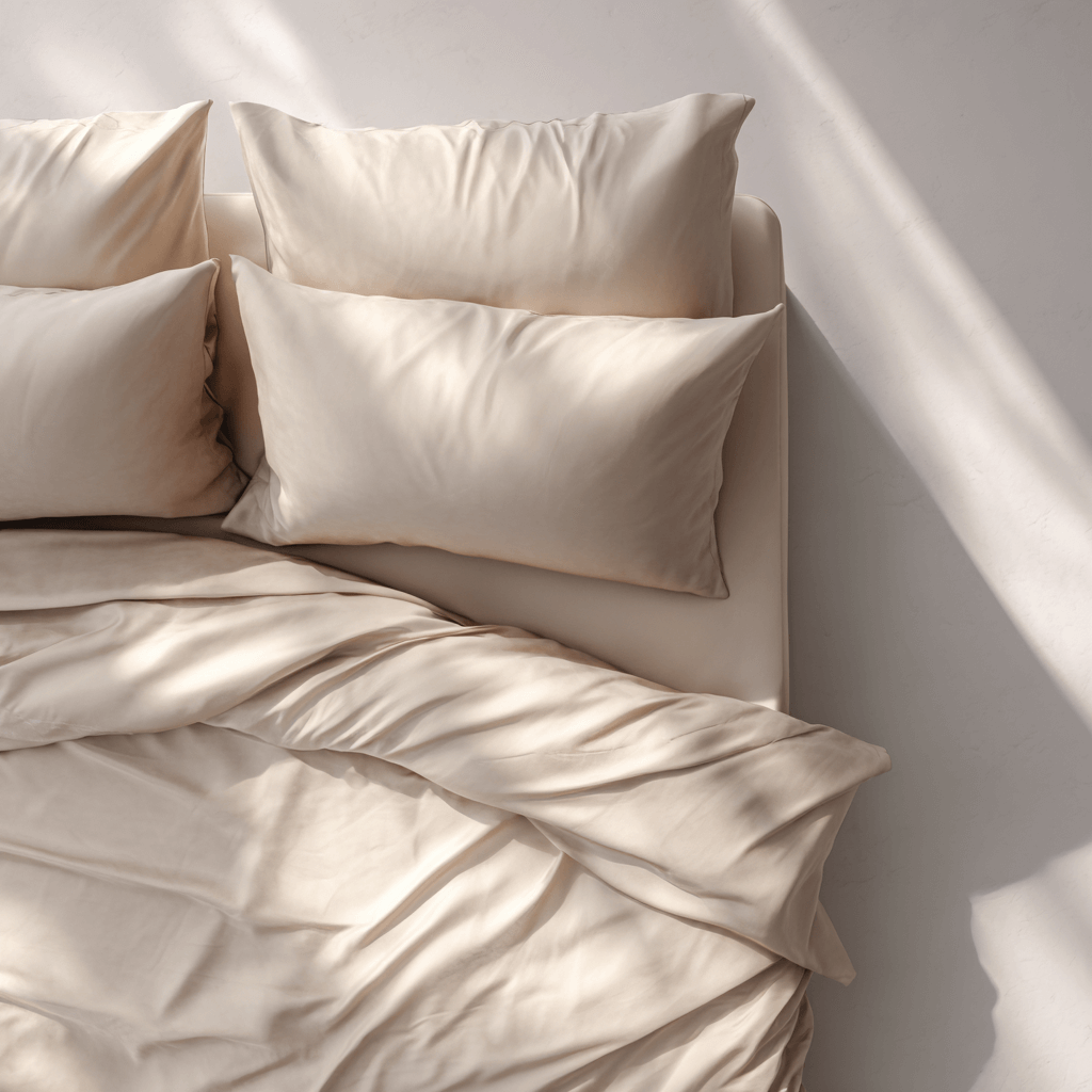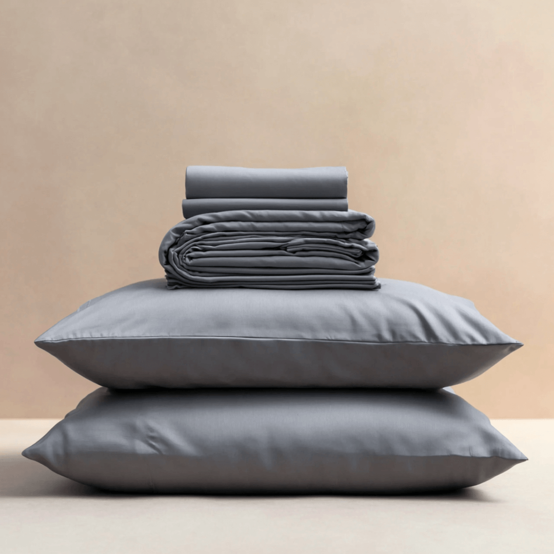 Cu o textură mătăsoasă și un luciu subtil, cearșafurile noastre sunt fabricate sustenabil și permit corpului tău să respire, reglând în mod natural temperatura pentru un somn mai profund și mai odihnitor.